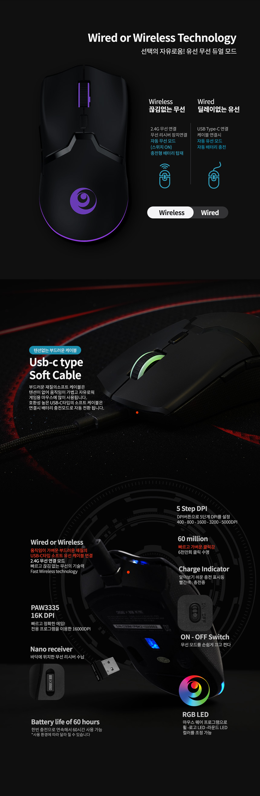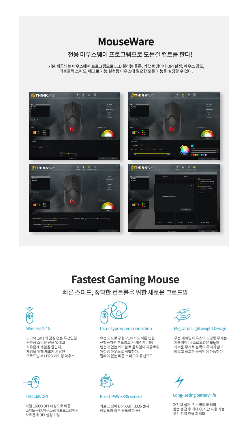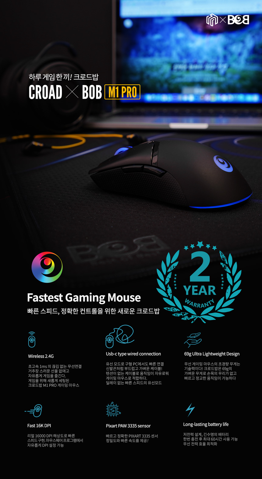 웨이코스 씽크웨이 크로드밥 CROADXBOB M1 PRO 게이밍 유무선마우스