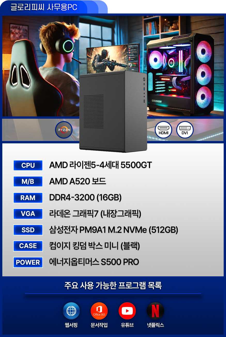 [No.1] 글로리PC - 사무용 / 업무용 / 가정용 (가성비 좋은 PC)