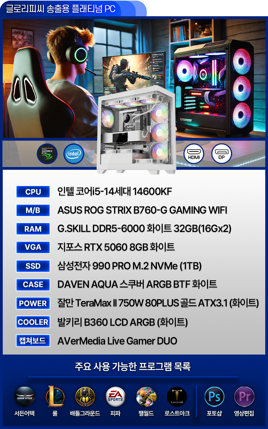 방송 송출용 플래티넘 PC (유튜브, SOOP, 버츄얼 등)