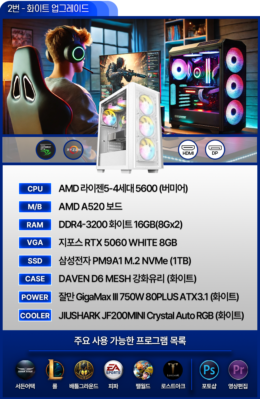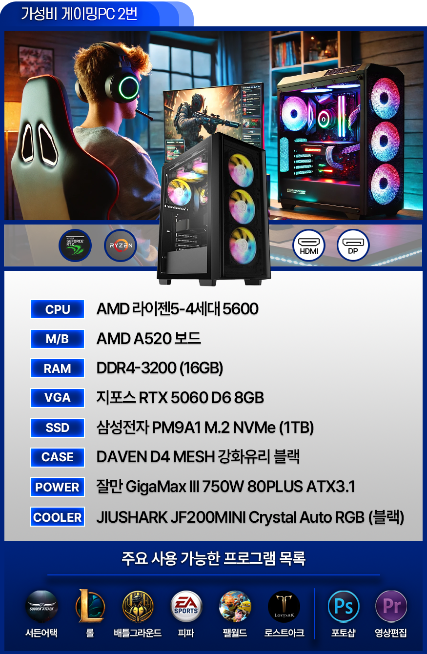 가성비 게이밍 컴퓨터 - 발로란트 / 서든어택 / 배그 / 피파 / 오버워치 / 로아 (VER.2)