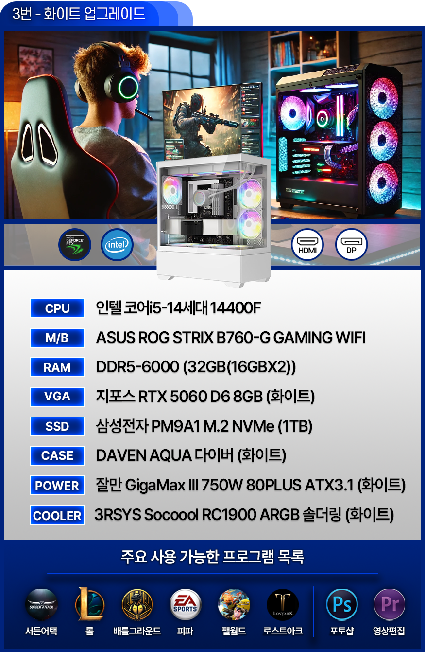 가성비 게이밍 컴퓨터 - 발로란트 / 서든어택 / 배그 / 피파 / 오버워치 / 로아 (VER.3)