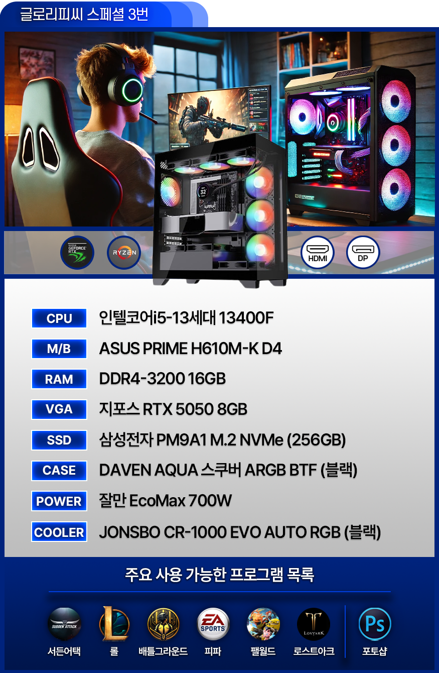 [인텔] 특가판매 게이밍PC 3번 (한정수량) - 발로란트 / 서든어택 / 배그 / 피파 / 오버워치 / 로아